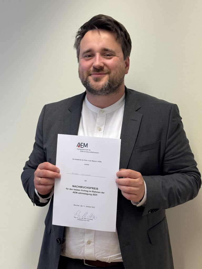 Alljährlich wird ein Nachwuchspreis für den besten Vortrag vergeben, so auch bei der Jahrestagung der AEM 2025 in München. In diesem Jahr ging der Preis an Andre Nowak für seinen Vortrag: